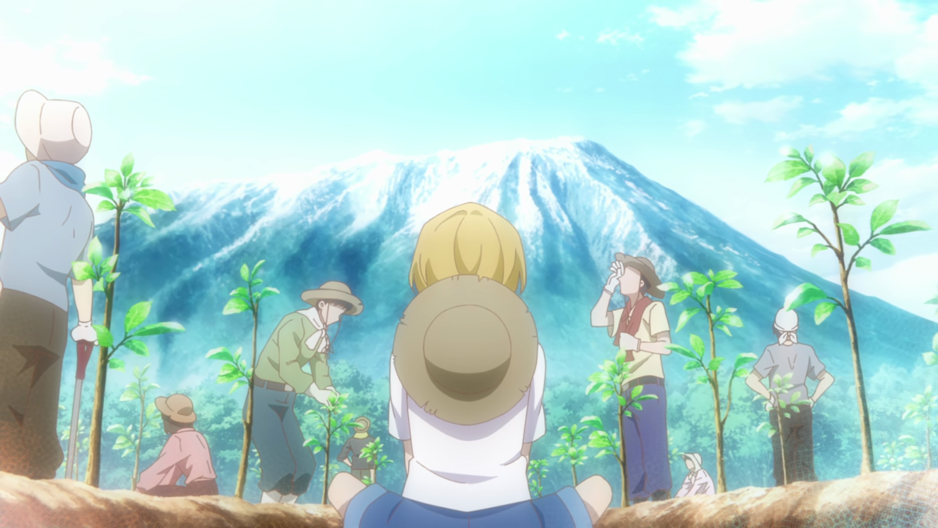 The villagers planting at the ten-year orchard after the storm.