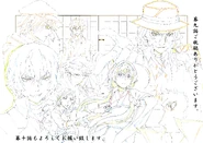 Model sheets, referred to as settei (設定, lit. "setup") in Japan, are referential documents used by production staff when animating the Bungo Stray Dogs series. These drawings are used to standardize the appearance of characters between animators and can include rough production sketches, object models, background layouts, or concept art.